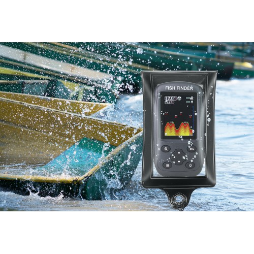 - When you catch a fish on a kayak/boat, it might splash water onto the fish finder screen. This water resistant bag protects your fish finder display from water splash. Don't have to worry anymore about the splash water might ruin your fish finder screen.